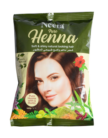 حناء نيتا النقيه منتج طبيعي محضر من اوراق الحناء النقيه والطبيعيه من حقول مدينه سوجات في ولاية راجستان في الهنديمنح هذا المزيج الفريد من الاعشاب الرائعه واوراق الحناء النقيه لونا بنيا طبيعا للشعر كما تعمل خصائص التبريد على تهدئة فروة الراس..